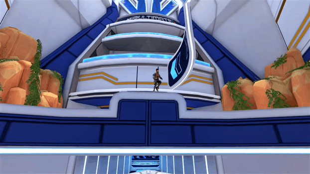 The goal of Nerf Ultimate Championship is to create a Nerf battle that wouldn’t be possible anywhere but VR. A key aspect to this design goal was a fast and fluid locomotion system, allowing players to jump, double jump, wall run, and mantel. This locomotion system gives players great mobility with a high degree of mastery, allowing them to seamlessly navigate our arenas while engaged high intensity Nerf battles.